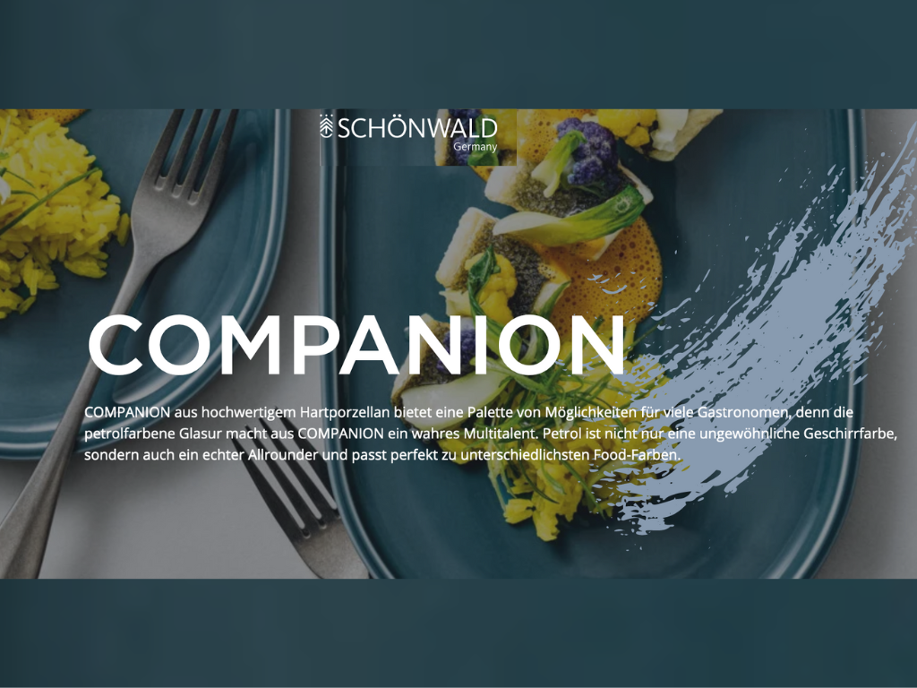 Das Besondere an der zweiten Kollektion, die benannt werden sollte, ist die petrolfarbene Glasur. Petrol kommt in der Natur nicht vor und macht die hochwertige Kollektion zu einem Allrounder, der zu unterschiedlichsten Food-Farben passt. Der Name COMPANION drückt nun genau das aus: Das Geschirr als perfekter Begleiter für alle möglichen kulinarischen Kreationen.