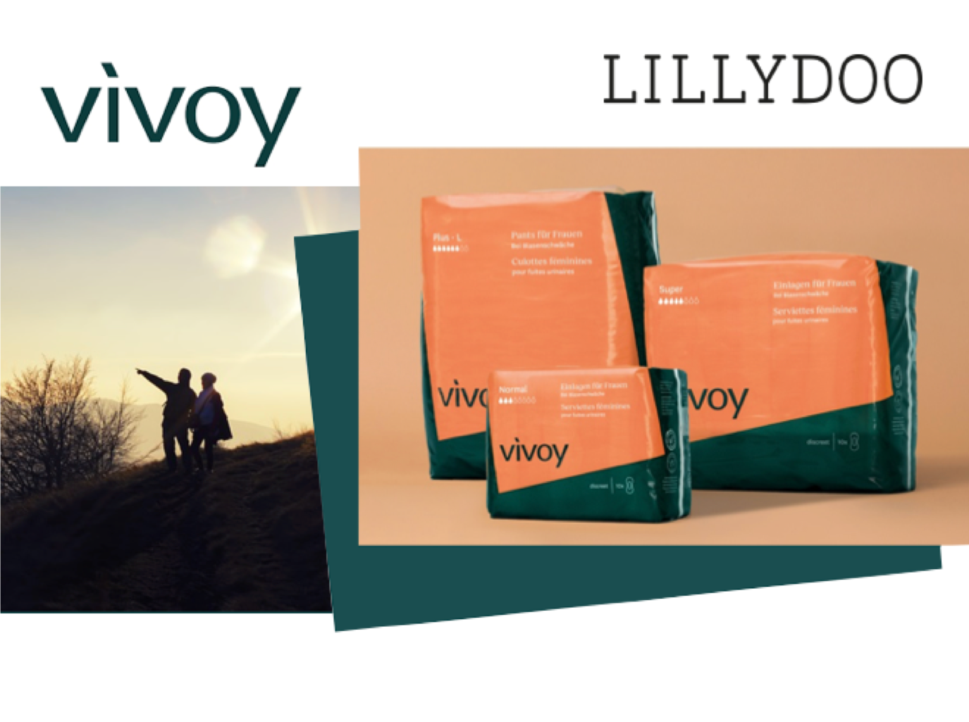 When the makers of the successful Lillydoo brand approached us to develop a new brand name for products for incontinence, we devoted ourselves to this special task with passion. The word and name search focused on the positive experience that is sought by using the product (again): An active, free and moving life that can be enjoyed again with and through the product. The recently introduced name vivoy was created by combining the appropriate terms vivid (alive/lively) and enjoy (enjoy) into a portmanteau word that elegantly expresses this “feeling afterwards”.