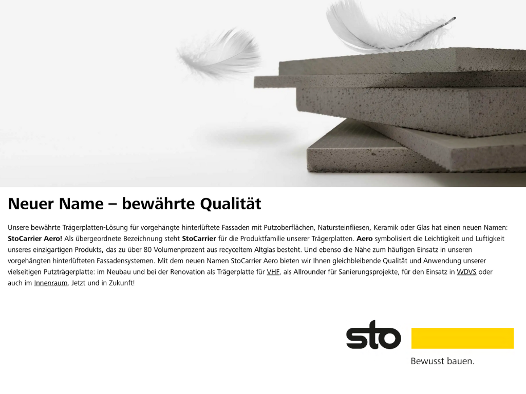 - StoCarrier Aero – für Leichtigkeit und Luftigkeit der recyclebaren Platte